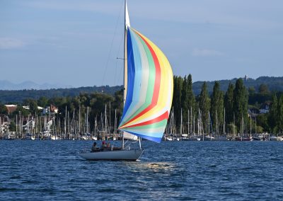 Es galt diesmal, die gelegten Bojen steuerbordsteitig zu umrunden, stellte sich doch zu Startbeginn ein passabler Wind von 3-4 kts Stärke aus West ein.